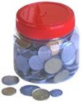 8-005 Gold&Silver coins (16x$1, 16x$2, 8x50c, 16x20c,24x10c,16x5c) in a small clear till with lid.