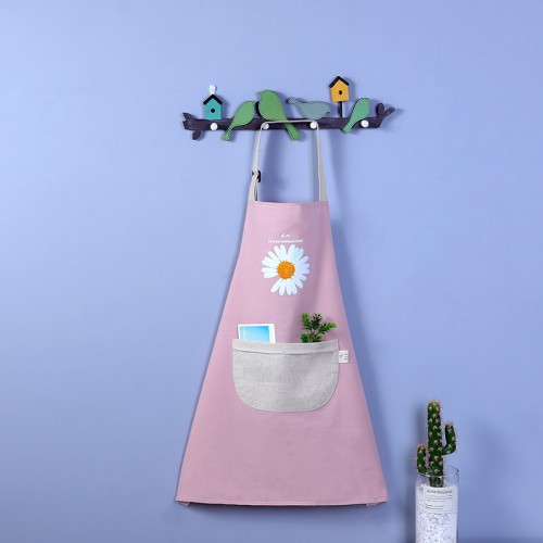 Daisy Pattern Adjustable Oil Stain Resistant Wine Red Bib Aprons For Men Women