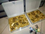 Each gold bar is minted with 99.99% fine gold and engraved with the manufacturer's name and the weight and purity of the gold.