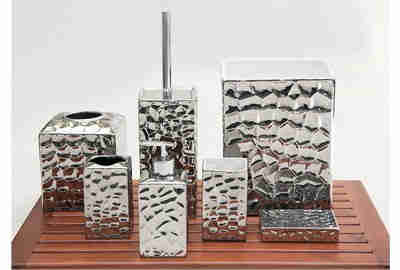 7 piece bathroom accessory, waste basket, toothbrush holder, tumbler, tissue box, soap dish, lotion dispenser and toilet brush holder